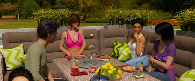 于是男主跟姐姐爱丽丝,妹妹丽莎,妈妈安一起住在了这座豪宅里面
