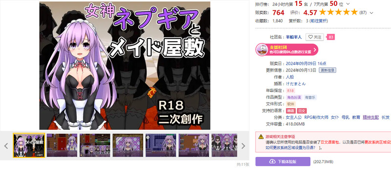 您可以在几乎解锁了所有“女神聂普基雅与女仆宅邸”付费特典的状态下游玩。
