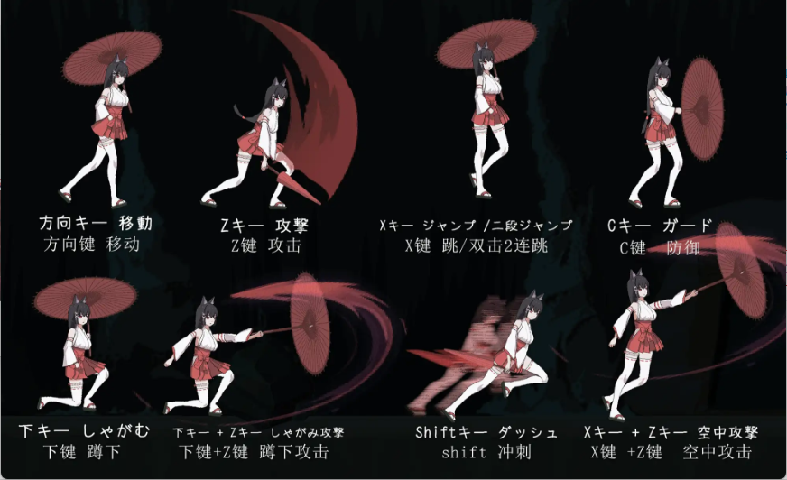 X键 + Z键:空中攻击