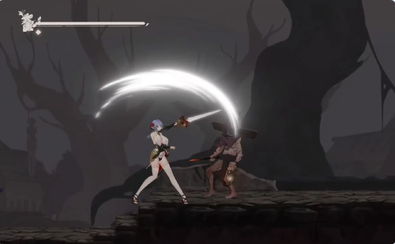 《圣女终焉》是我们的第一个项目,是一款面向成人(18岁以上)的横版动作游戏,背景设定在一个黑暗的世界。
