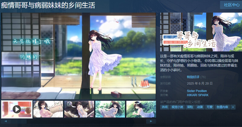 《痴情哥哥与病弱妹妹的乡间生活》是由日本美少女游戏品牌Sister Position制作的养成类像素风RPG。