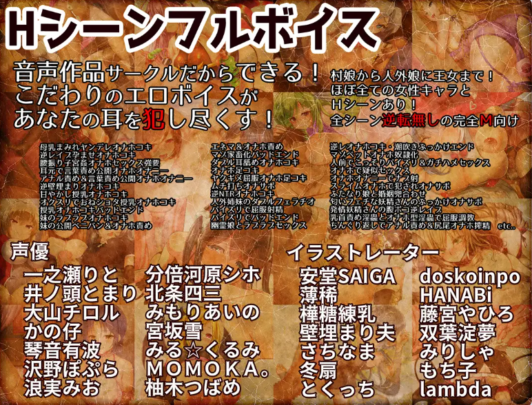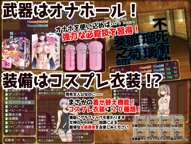 这是一款声音特化型的完全受虐向色情角色扮演游戏,登场的几乎所有女孩子都会被飞机杯不断侵犯。