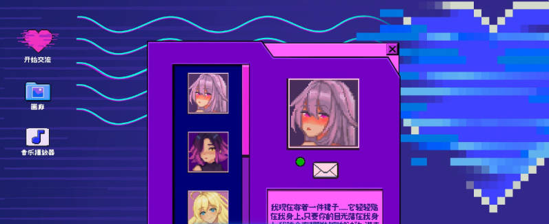 GLITCH HEARTS 是一款安静而亲密的益智游戏,从一位女生的视角讲述她在交友网站上与其他女生相识的故事。