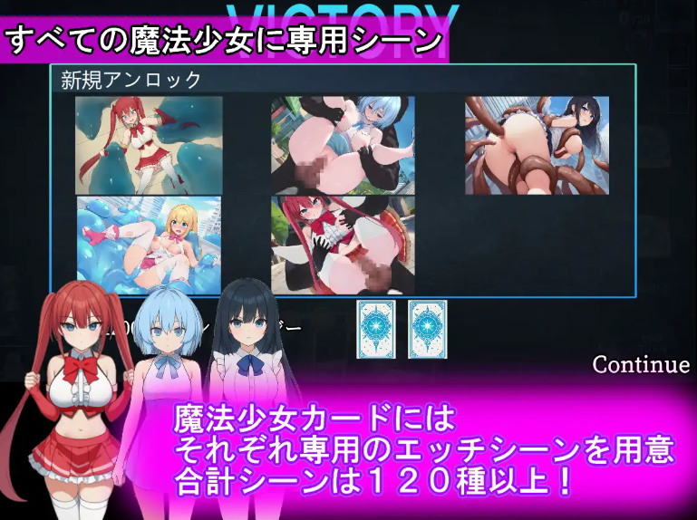 怪人们会使出触手攻击、史莱姆攻击、催○攻击等各种色情技能 还能收集魔法少女们的色情场景哦♡