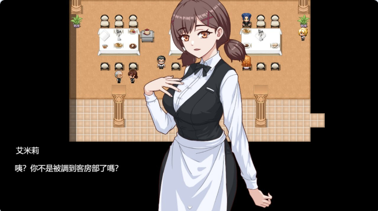 日常需要再【客房区】打扫客房赚取金钱,在【商业区】下方的【便利店】可以消费金钱。