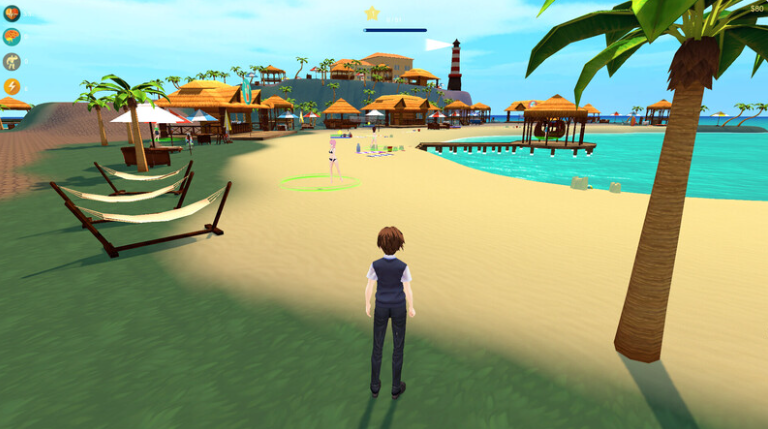 与海滩上的女孩交谈以获得裸照。一些女孩裸体跳舞,并解锁了包含所有收集照片的相册。