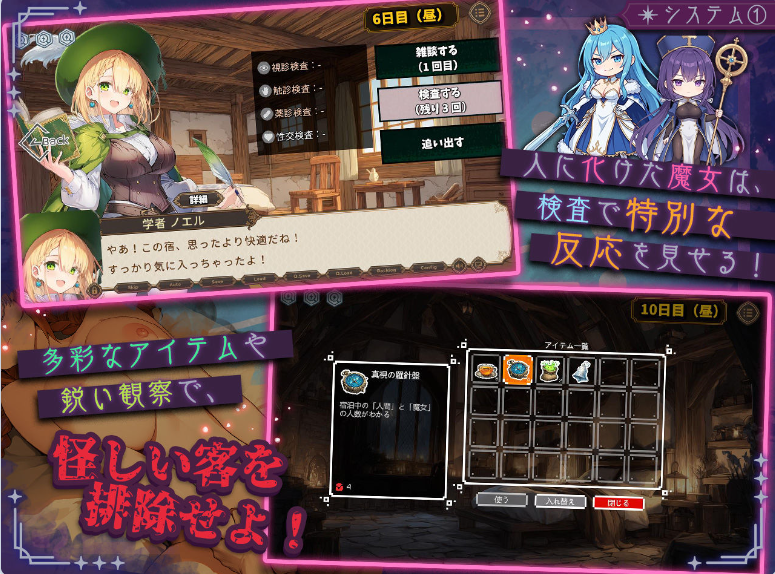・对住客进行身体检查,揪出伪装成人类的魔女吧!