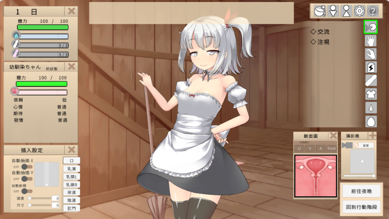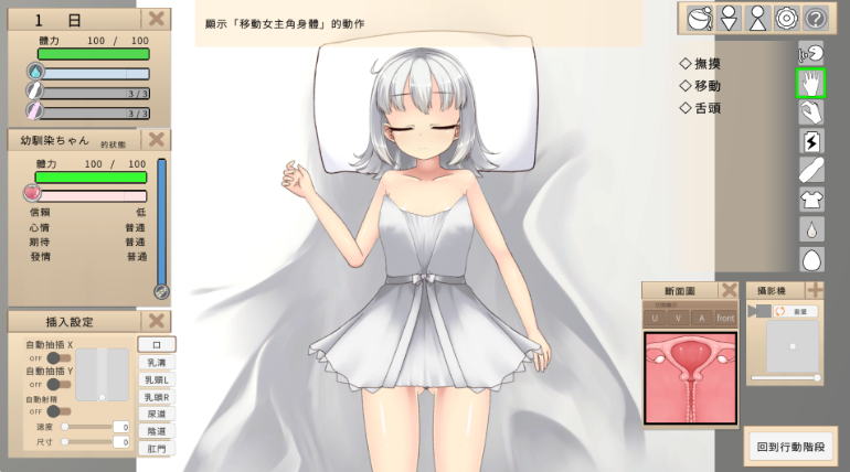 可以进行对话、轻柔触摸,以及插入、使其怀孕、分娩等一系列命令。