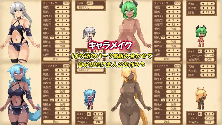 从发型、胸部大小、角或猫耳,到阴毛有无等,各式各样的部件中自由选择,