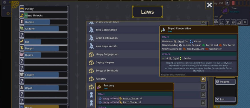 你的岛屿可以容纳数百名魔物娘,但要提升她们的阶级,你必须满足她们的需求。