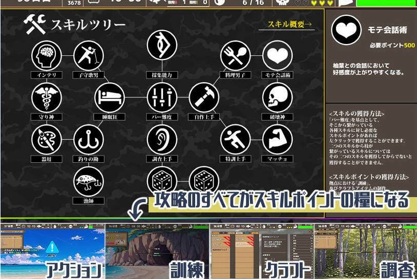 生活中几乎每项行动都可以获得技能点数。