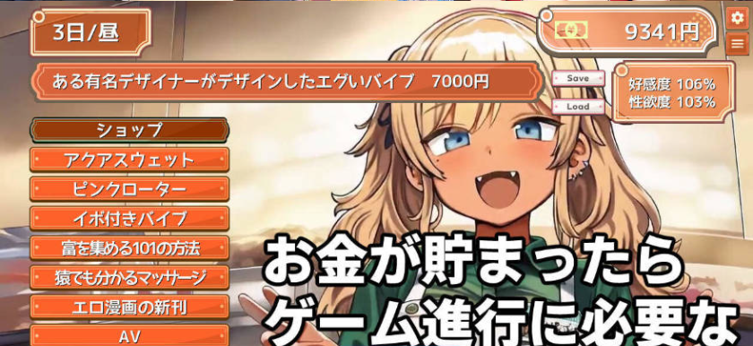 在早晨和白天工作攒钱,偶尔在商店购买道具,
