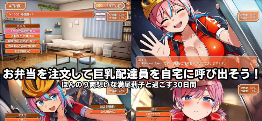 主人公对曾使用过的外卖配送员巨乳配送员一见钟情。