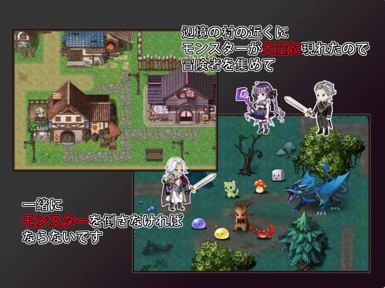 你將扮演一個偏僻小村的少年村長,因爲魔物之王遷徙至附近,導致大量怪物出沒吸引了很多冒險者前來。